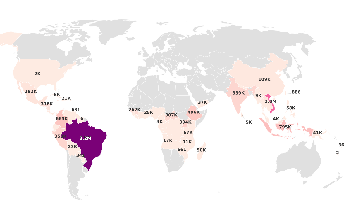 | Brazil | 3.2M | 14.36 | 2.2 | 1.8M |