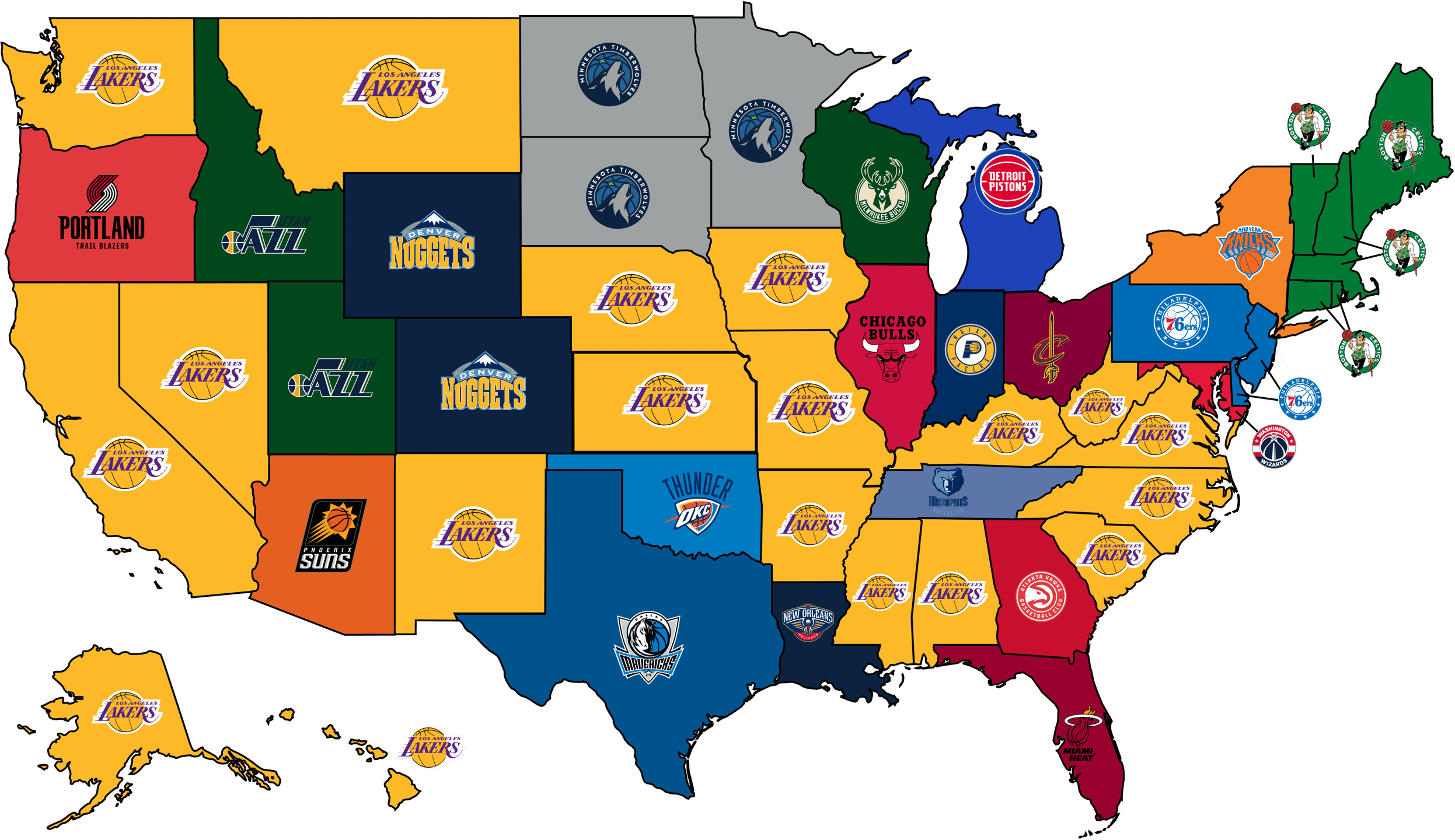 The National Basketball Association (NBA) has long been a dominant sports league in the United States, with a rich history that goes back more than seven decades. Teams from the NBA provide sports fans with thrilling entertainment, fostering community spirit and unity across different states. Varying in culture and economy, each state naturally tends to favor a particular NBA team. Our research aims to highlight America's favorite teams based on state, serving as a comprehensive guide to the basketball allegiances across the country.