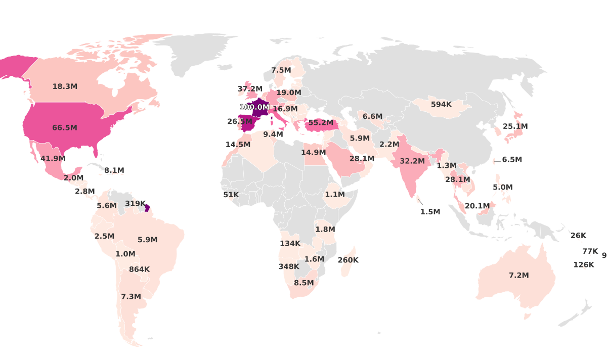 - Interestingly, Asian countries like China, with 65.7 million, Turkey, with 51.2 million, and Thailand, with 39.8 million, emphasize the growing interest in Asian cultures, history, landscapes, and culinary delights.